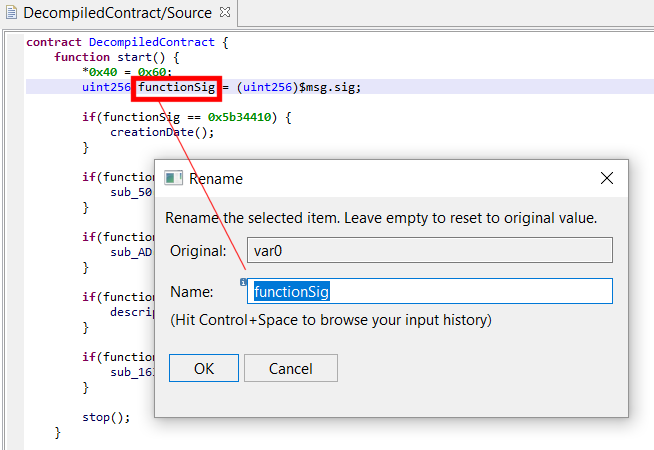 - As said earlier, the Tab key is useful to navigate back and forth from low-level EVM code to high-level decompiled code